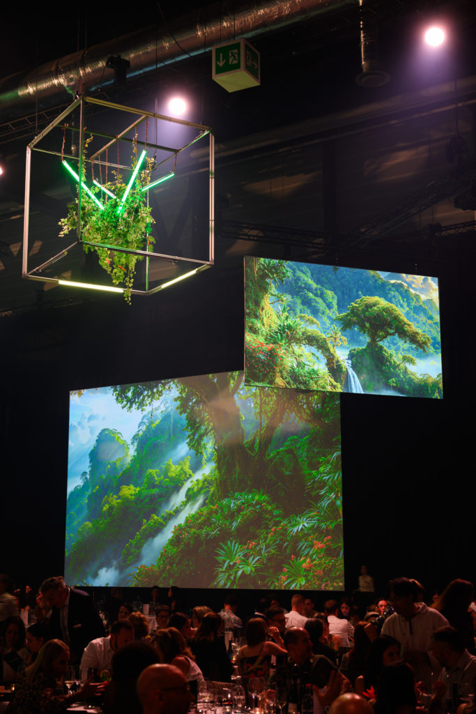 To mark La Vaudoise’s 130th anniversary, we created an immersive projection mapping that transformed the walls and stage into a vibrant jungle.